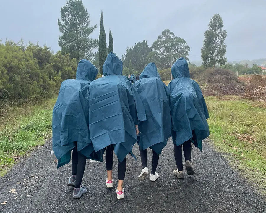 En el Camino nos llovió un montón en especial el último día que es justo la etapa más larga (33 kilómetros) además de añadir el cansancio de todo el resto de días. Como reto nos ha parecido importante animar a nuestros alumnos a no abandonar a la mínima que empieza a exigir más de nosotros el Camino. Animarles a que merece la pena seguir caminando, a que la vida no va de vivir cómodos viendo una serie tirados en el sofá y proponerles una vida que tenga que ver más con una aventura que con hacer “lo que menos esfuerzo me exija y más rápido me permita llegar al objetivo”.