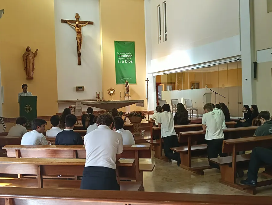 Cumbres School Valencia celebró la Semana Vocacional con actividades adaptadas a la vida escolar. El lunes 13 se celebró el Día del Párroco, con la visita de varios sacerdotes que compartieron momentos de oración y alegría con los alumnos de Infantil, Primaria y Secundaria. Además cada clase tuvo un tiempo de reflexión sobre la vocación y un espacio de adoración eucarística por las vocaciones. De hecho, el Santísimo permaneció expuesto incluso durante los recreos, de modo que alumnos y formadores pudieran acudir libremente a rezar.