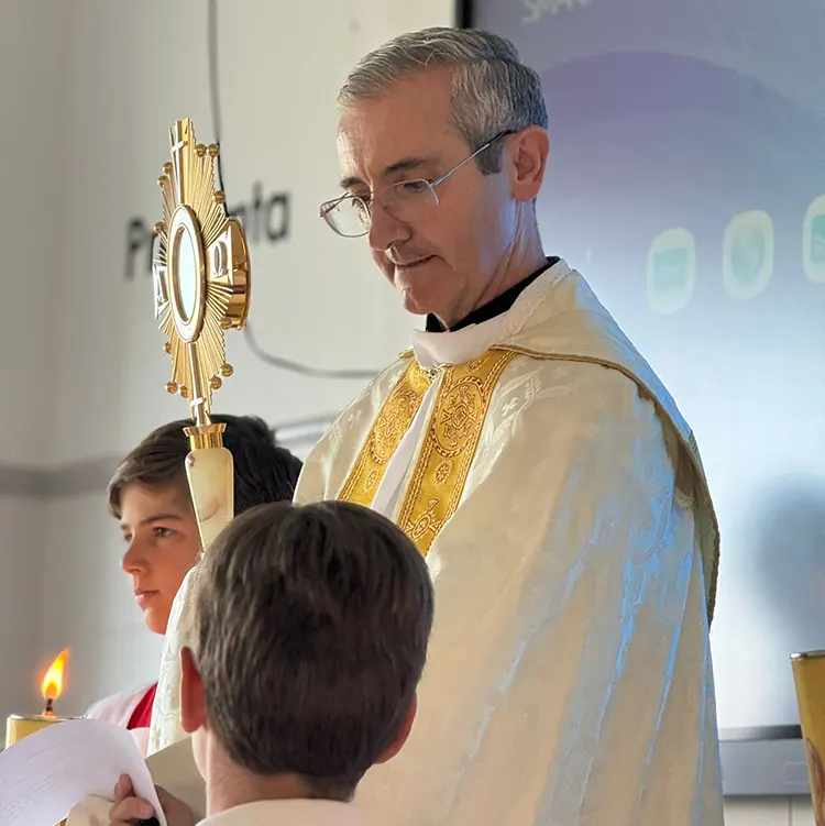 La comunidad escolar celebró la Solemnidad de Corpus Christi con una procesión Eucarística por las instalaciones del colegio. Los alumnos crearon dos alfombras y tiraron pétalos de flores al paso del Santísimo. Además, en infantil, el P. Josep Caminal, L.C., llevó el Santísimo a las clases, acercando a Jesús a los más pequeños que le esperaban con mucha fe.