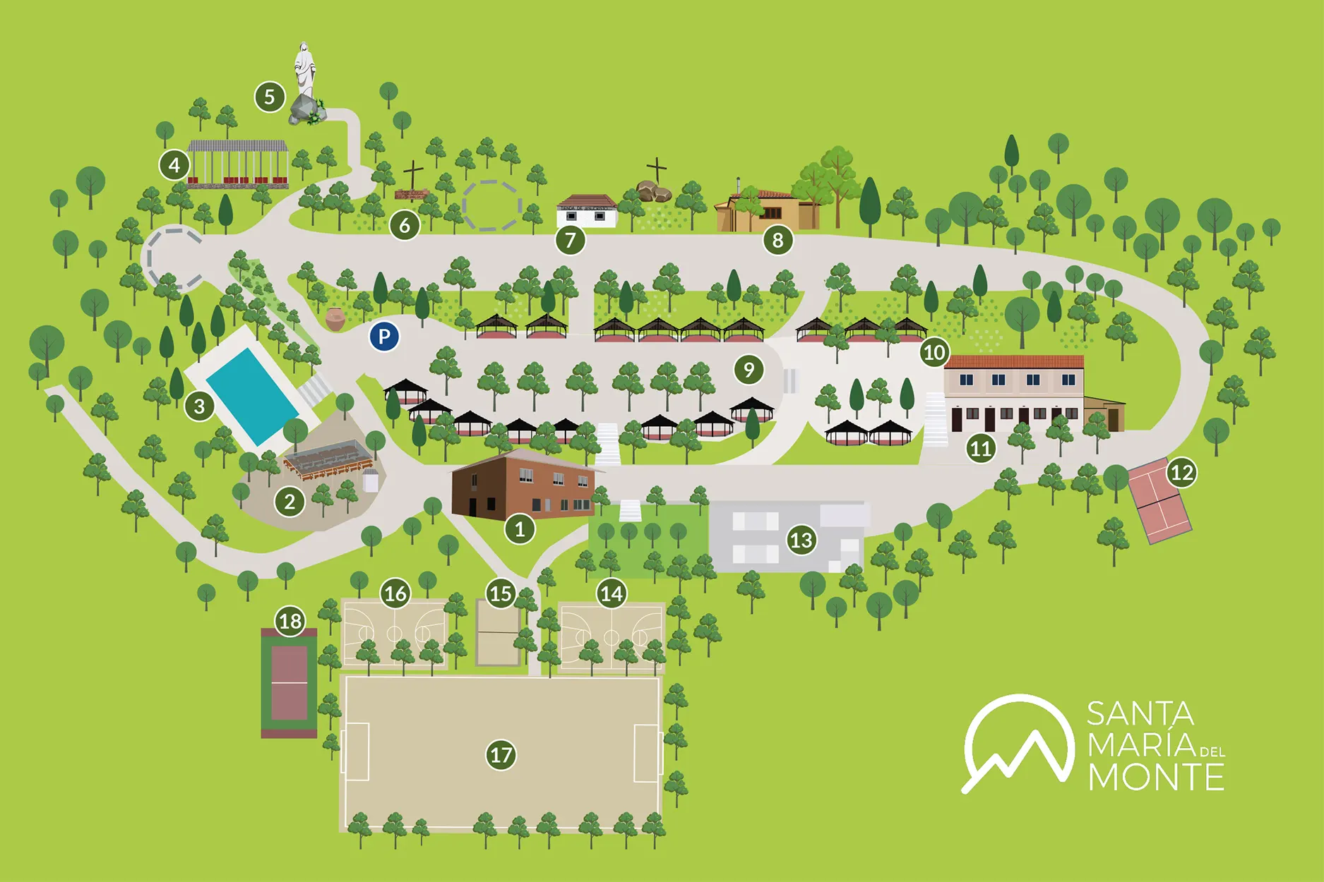 Junto a su dimensión espiritual, el lugar ofrece un entorno natural idóneo para actividades recreativas y deportivas. Santa María del Monte cuenta con instalaciones para fútbol, baloncesto, natación, tenis, pádel, skate y ciclismo, entre otros deportes. Así, el espacio se consolida como un centro versátil, preparado para responder a distintas necesidades apostólicas, espirituales y recreativas.