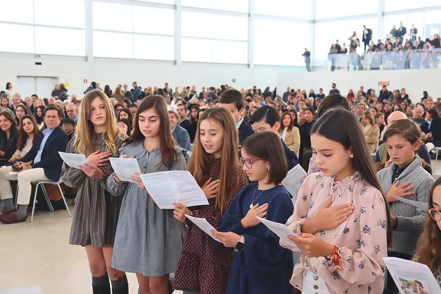 La celebración de Cristo Rey en Madrid reunió a unas 1.200 personas en el polideportivo de la Universidad Francisco de Vitoria, en un ambiente muy festivo y familiar. La víspera se había celebrado el seminario “Vive el Misterio”, que preparó espiritualmente a muchos de los asistentes para esta solemnidad.