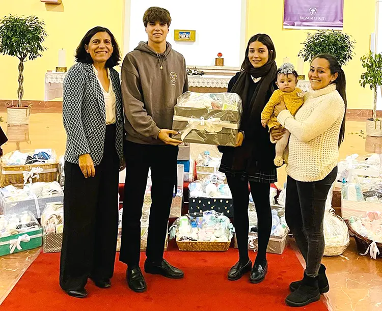 Una de estas colaboraciones se canaliza a través de la asociación RedMadre. Durante el último curso, este colegio Regnum Christi ha contribuido con aportaciones económicas que ascienden a aproximadamente a 1.500 euros y ha organizado la entrega de 33 canastillas, con la participación activa de 97 alumnos de 4º de ESO y Bachillerato. La asociación, apoyada por padres y madres del colegio, acompaña a mujeres embarazadas que enfrentan situaciones difíciles y deciden continuar con su embarazo.