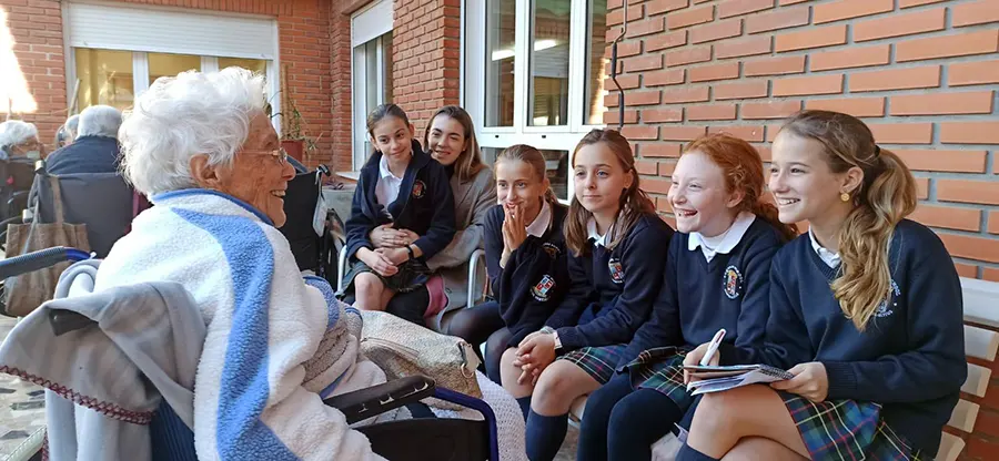 La comunidad educativa también extiende su mano a otros sectores vulnerables, como los ancianos. A través de las convivencias de los estudiantes de 1º y 2º de ESO, y de Primaria, más de 200 alumnos se involucran en visitas trimestrales y más regulares a las residencias de mayores, especialmente a las Hermanitas de los Ancianos Desamparados. Estas actividades permiten a los jóvenes aprender y vivir la vocación de cuidar a los mayores con dignidad y amor.