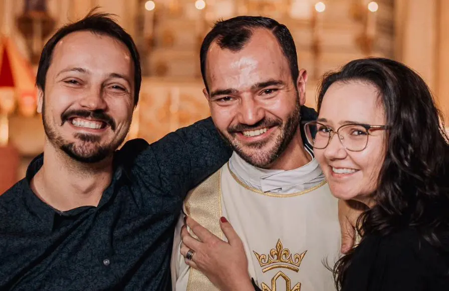 En 2002, a los 12 años, un sacerdote legionario de Cristo, el P. Eduardo Linares, visitó mi escuela, me invitó a conocer el seminario y luego a participar del curso de verano de la apostólica de Porto Alegre, Brasil. En el seminario fui conociendo a los hermanos, a los sacerdotes, haciendo amistades, jugamos al futbol, teníamos nuestros paseos, misa diaria, rosario… Al final del mes, mis padres vinieron a visitarme y les dije que quería quedarme, que los padres del seminario no me estaban obligando a quedarme, que estaba feliz, que me sentía en casa. Ellos no solo aceptaron, sino que me apoyaron, diciendo al mismo tiempo que la puerta de casa siempre estaría abierta para mí, si viera que el sacerdocio no era lo mío.
