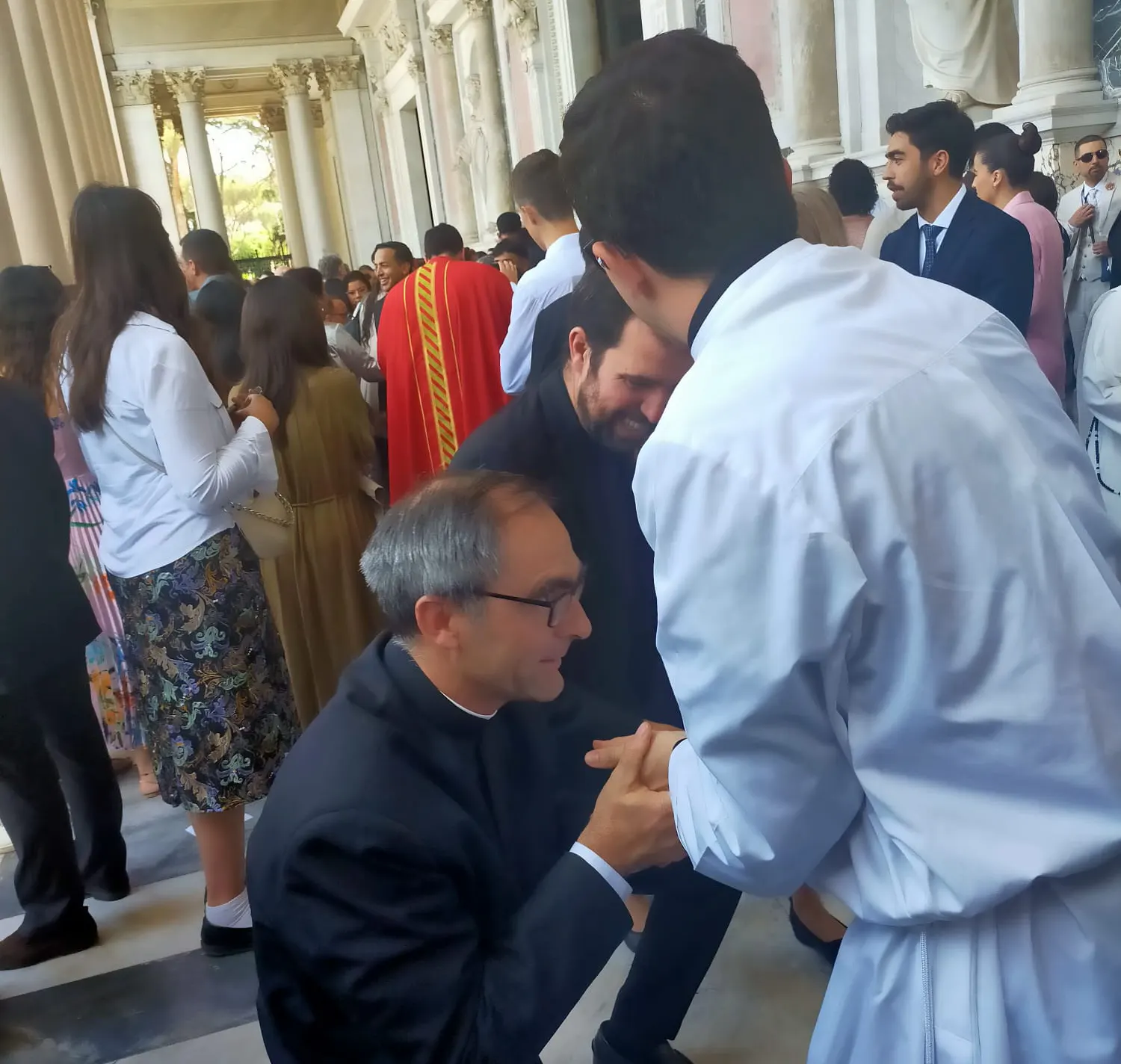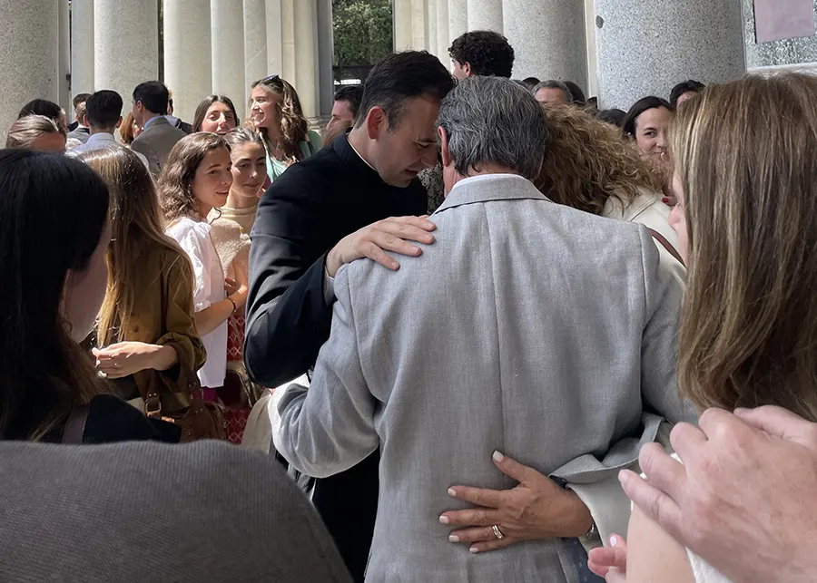 Estamos en la Basílica de San Pablo Extramuros, en este escenario precioso donde vamos a poder acompañar a 23 hermanos nuestros. Dos de ellos están trabajando en España: el padre de Plasencia y el padre Javier Villar. Es un día gozoso. Una familia me preguntaba cómo me sentía, y les respondía que, para un sacerdote, es como un parque de atracciones: todo son alegrías y emociones. Disfrutar, recordar nuestra ordenación sacerdotal, ver el cariño y el amor de tantísima gente que viene a acompañar en esta ceremonia, es un motivo de gloria. En este día de Pascua, exaltamos al Señor por todo el bien que nos ha hecho, le pedimos ser fieles a nuestra vocación y encomendamos a estos hermanos sacerdotes.
