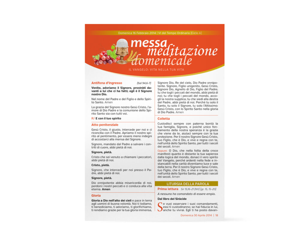 MessaMeditazione domenicale è un foglio domenicale pubblicato da Edizioni ART e pensato per aiutare le parrocchie e le comunità cristiane a vivere la liturgia in modo più consapevole e partecipativo. Ogni edizione offre il testo delle letture domenicali, arricchite da meditazioni e riflessioni che accompagnano i fedeli nel profondo significato della Sacra Scrittura.