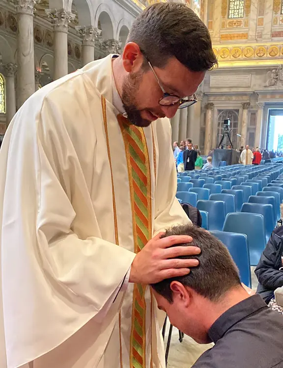 Ha sido un regalo acompañar al P. Gustavo en este camino: haber vivido durante este año su diaconado y luego verle salir como sacerdote. Un momento muy especial es cuando todos rezamos mientras les imponen las manos, todos suplicando al Espíritu Santo que descienda sobre ellos, la Iglesia triunfante y la peregrina unida rezando por ellos. Signos como el besar sus manos te ayudan a ver lo que ha pasado: ¡ahora estas manos pueden traer a Jesús, pueden dar la absolución! Son tantas gracias y dones que cuesta comprender con la cabeza lo que sucede, sin embargo el corazón lo comprende mejor y sale lleno.
