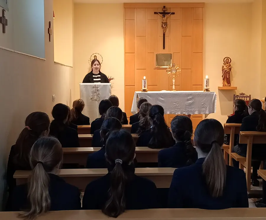 Tuvimos adoraciones por clase para ponerlos delante de la mirada de Dios, ya que, sin encuentro con Él, nada tiene sentido. También, testimonios en las clases donde los alumnos tenían espacio para preguntar sobre la vida consagrada o preguntas personales a cada uno de los invitados. También ha habido mesas redondas con testimonios, tanto para 4º de ESO como para bachillerato.